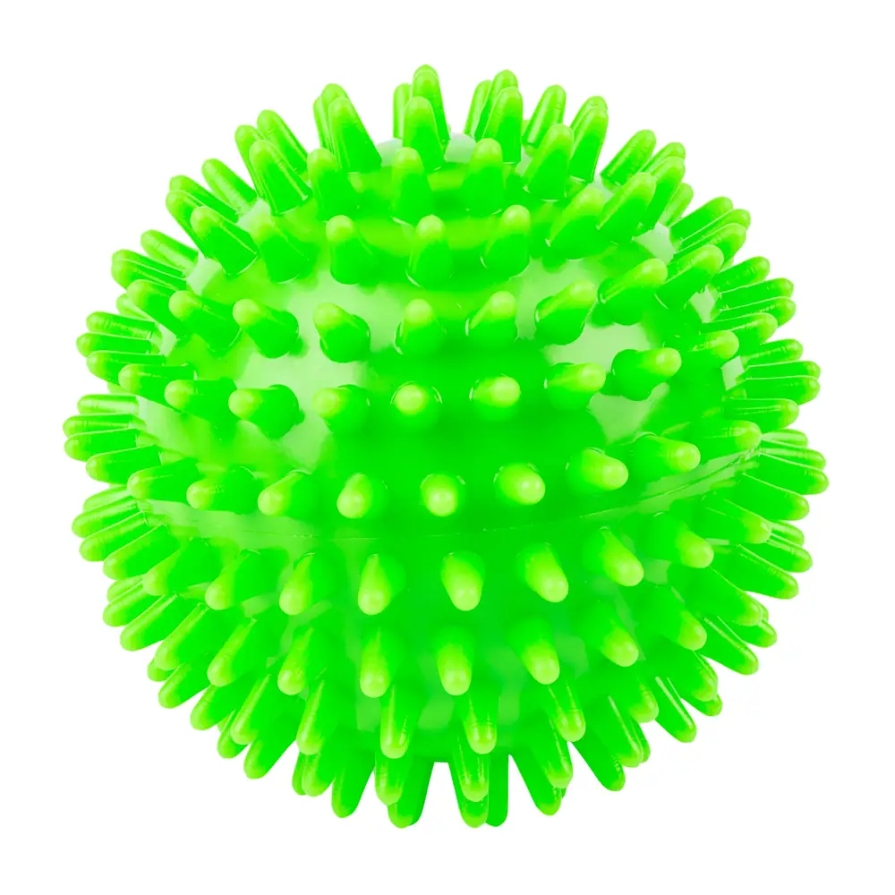 Piłka rehabilitacyjna z kolcami (jeżyk) do masażu i ćwiczeń dłoni. Poprawia krążenie, siłę chwytu i koordynację ruchową.