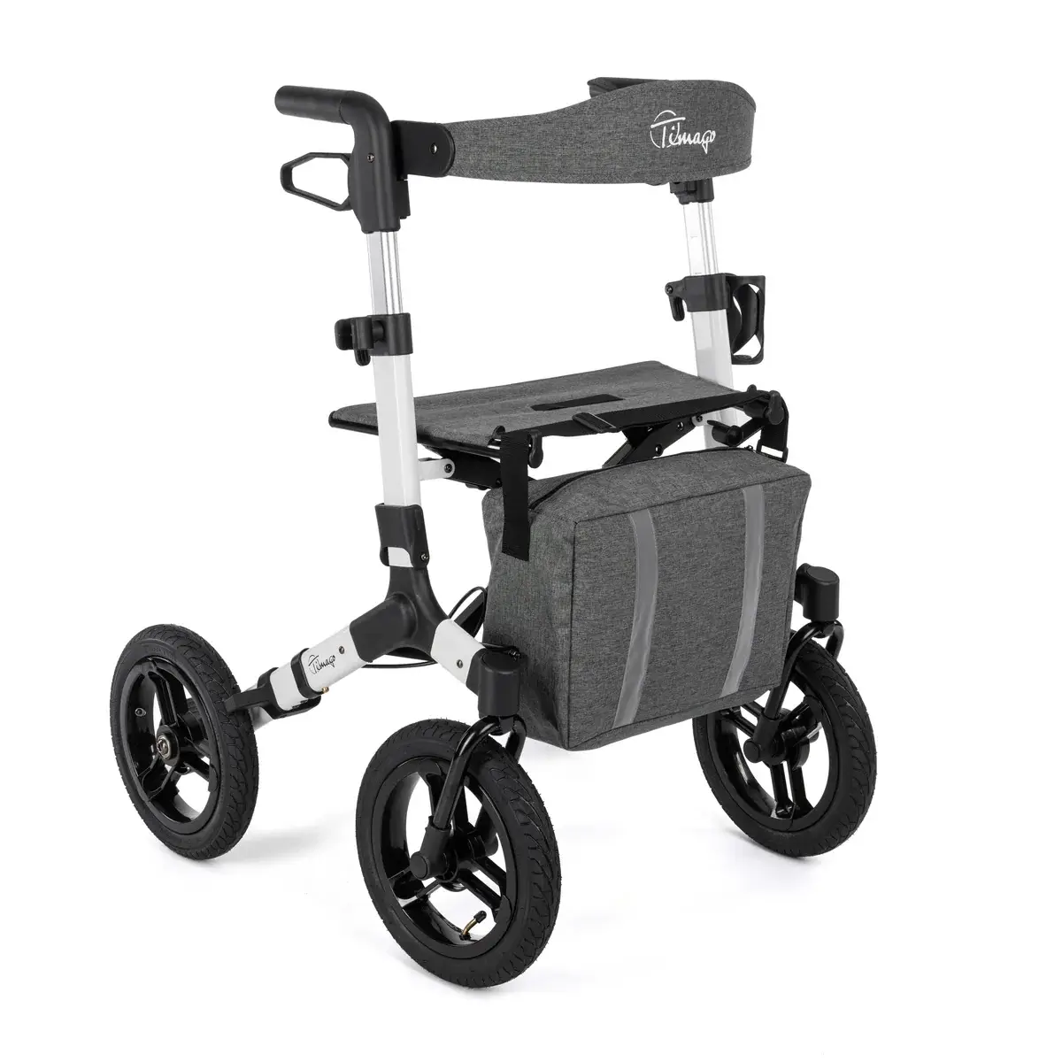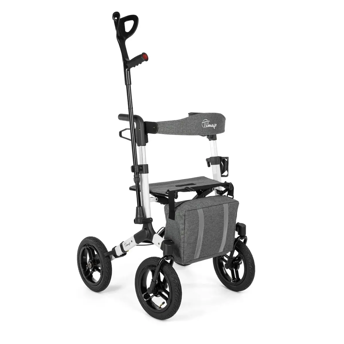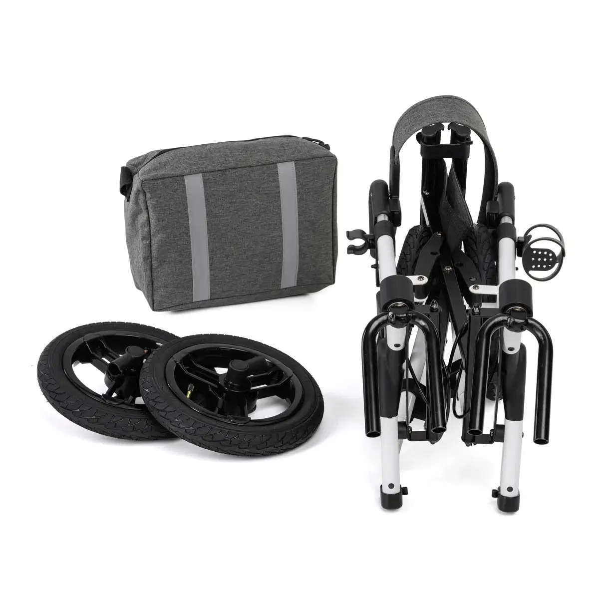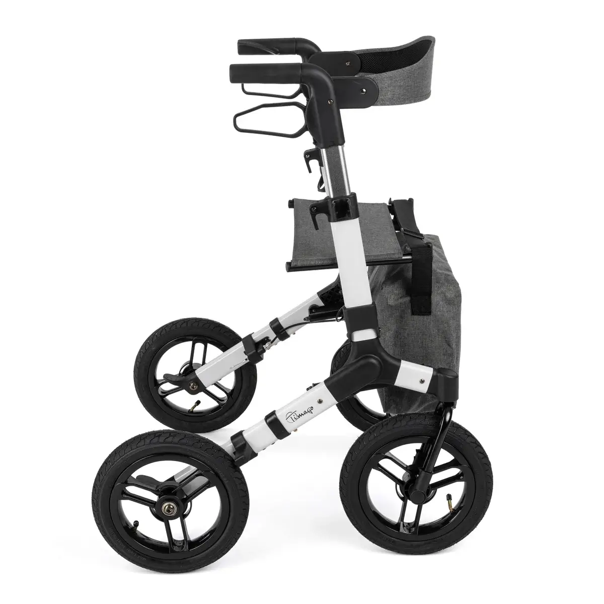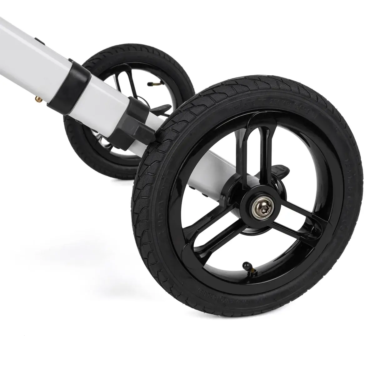 Duże, pompowane koła o średnicy 12 cali ułatwiają płynne prowadzenie i manewrowanie po różnych nawierzchniach. Regulowane rączki zakończone anatomicznymi uchwytami zapewniają komfortowy chwyt i możliwość dopasowania wysokości do użytkownika. Wbudowane siedzisko z oparciem pozwala na wygodny odpoczynek w dowolnym momencie spaceru.