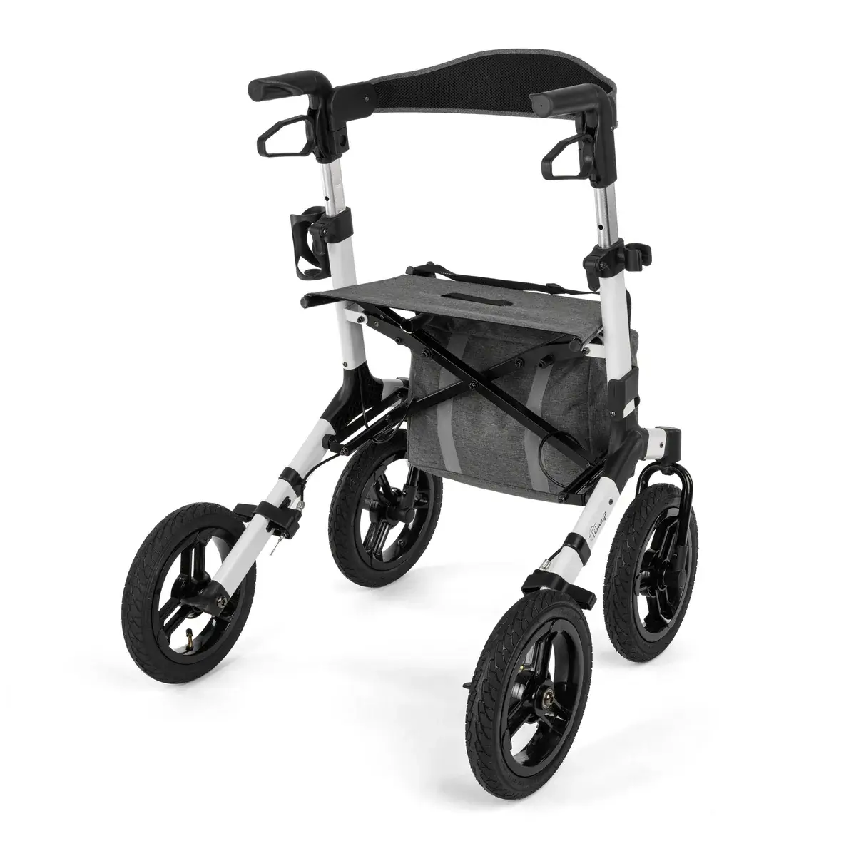 Dodatkowo podpórka posiada uchwyty na laskę lub kulę, uchwyt na kubek lub butelkę oraz podręczną torbę na zakupy. Konstrukcja oparta na ramie krzyżakowej z rurkami o owalnym przekroju zwiększa wytrzymałość na nacisk osiowy, czyniąc RANGER stabilnym i niezawodnym wsparciem każdego dnia.