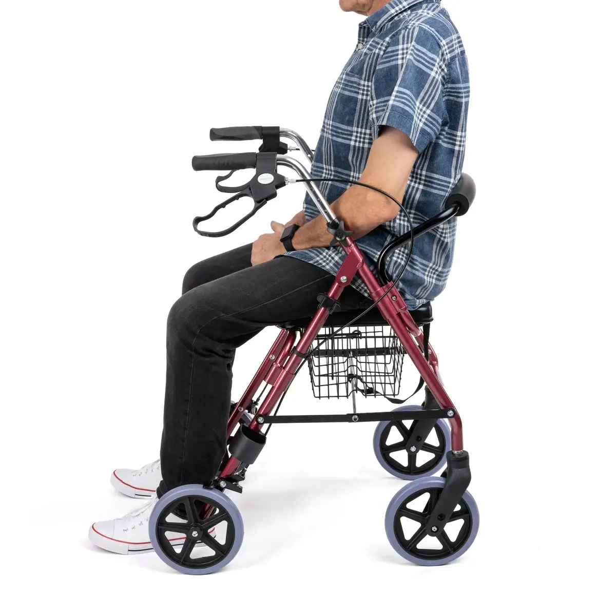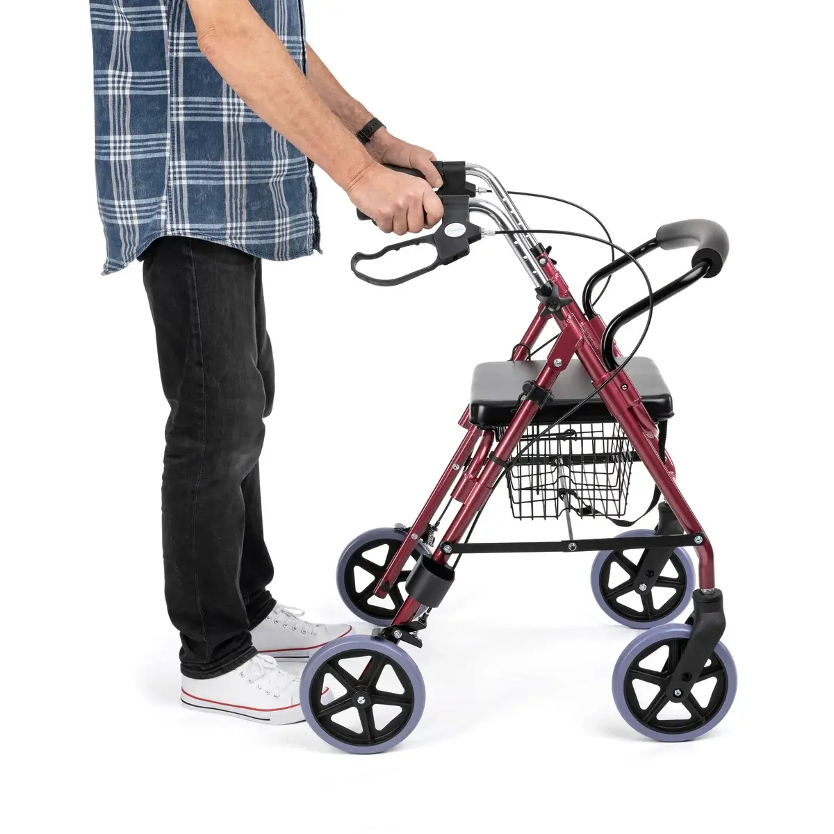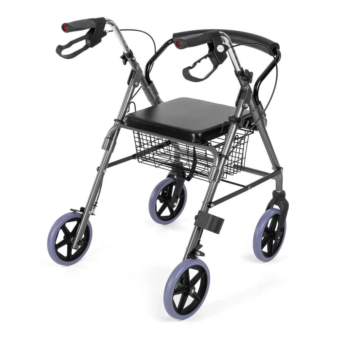 Podpórka Victoria zapewnia stabilność i komfort chodzenia. Siedzisko, hamulce, regulacja i składanie dla wygody użytkowania.