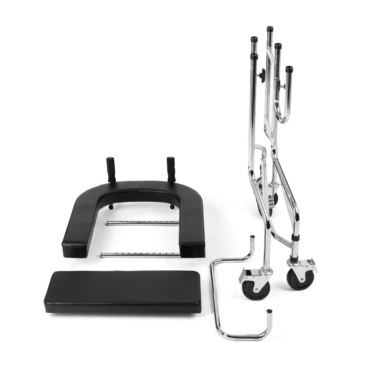 Regulowana wysokość podparcia pozwala dopasować sprzęt do indywidualnych potrzeb użytkownika. Wbudowane siedzisko umożliwia chwilowy odpoczynek w każdej sytuacji.
